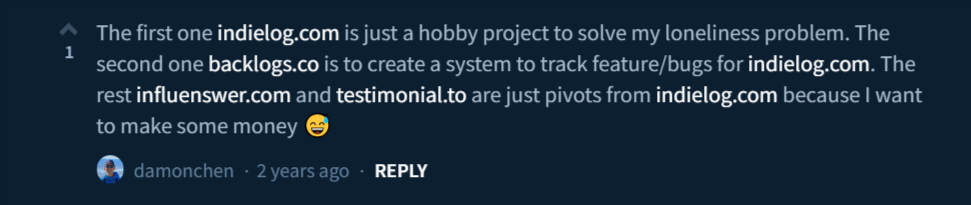 Damon tried out 4 projects but he generated no income, or to be more precise, he generated $1.99. It was at the fifth attempt where he began to see some traction: “Testimonial.to”.