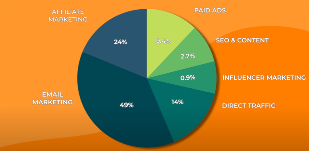 - Almost 50% of AppSumo’s revenue is generated through Email Marketing. It is an exceptional acquisition channel due to its simplicity: collect the emails of your website visitors. This way, you don't have to acquire new customers every time. To clarify, you'll still need to attract new customers, but having a customer base makes it easier. Each email can potentially lead to revenue, depending on factors like quantity, the value you offer, and pricing. Email marketing is cost-effective and enables direct communication with your audience. Unlike platforms such as Facebook, where continuous payments are needed to reach your audience, email allows you to send messages multiple times without additional costs. Furthermore, you have control over and can scale email, unlike Instagram or blogs dependent on limited visibility or external algorithms. This flexibility makes email the most scalable marketing channel.